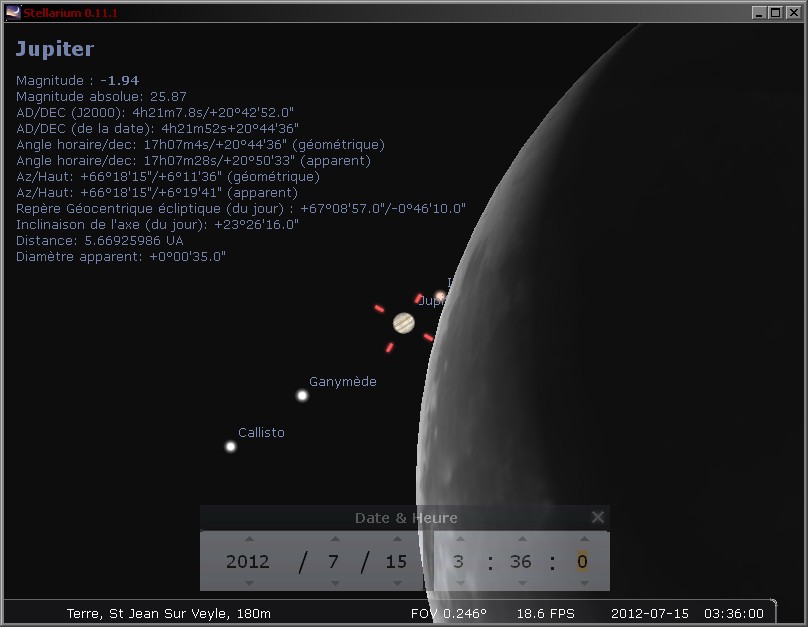 Le 15 juillet vers 3h30 locales, la Lune va occulter Jupiter et ses satellites. Le spectacle au NEE et bas sur l’horizon (altitude 8-10°) promet d’être splendide - même aux jumelles.