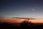 Ce lundi 26 décembre, j’ai pu observer un magnifique premier croissant et la lumière cendrée. A l’arrière-plan on distingue la Chaîne des Puys avec le Puy de Dôme. Coordonnées du lieu : près de Saint Germain des Fossés : 46°13’14’’N ; 3° 27’51"E.
