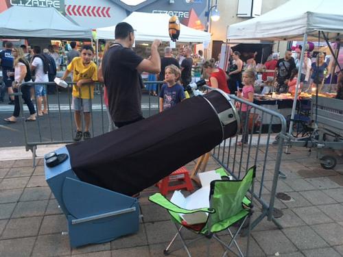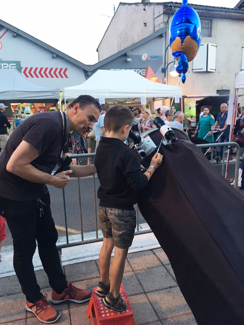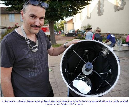 Jean-Louis, un astronome amateur d’AstroSaône avait pris l’initiative, avec le soutien de la mairie de Charnay, de mettre pour un soir à disposition du grand public, les performances remarquables du télescope qu’il s’est lui-même construit.