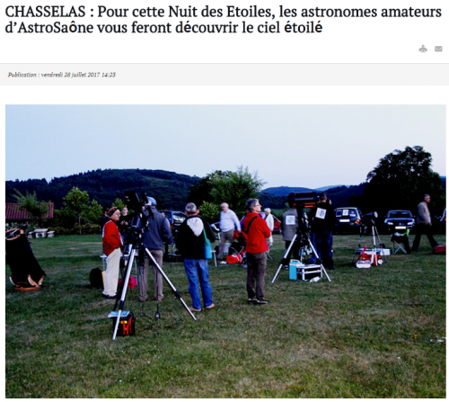 28/07/2017 Mâcon Infos : CHASSELAS : Pour cette Nuit des Etoiles, les astronomes amateurs d’AstroSaône vous feront découvrir le ciel étoilé