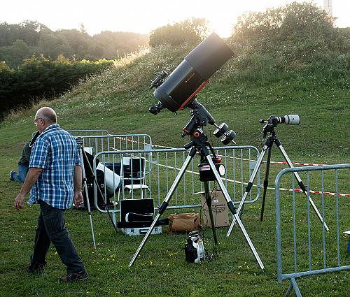 L’obscurité se faisant, les constellations du ciel d’été ont volé la vedette aux planètes ! Relayé par la sono, un astronome amateur a expliqué à tous comment cheminer – de la Grand Ourse et de la Polaire, au Bouvier, à Hercule et au Grand Triangle de l’été.